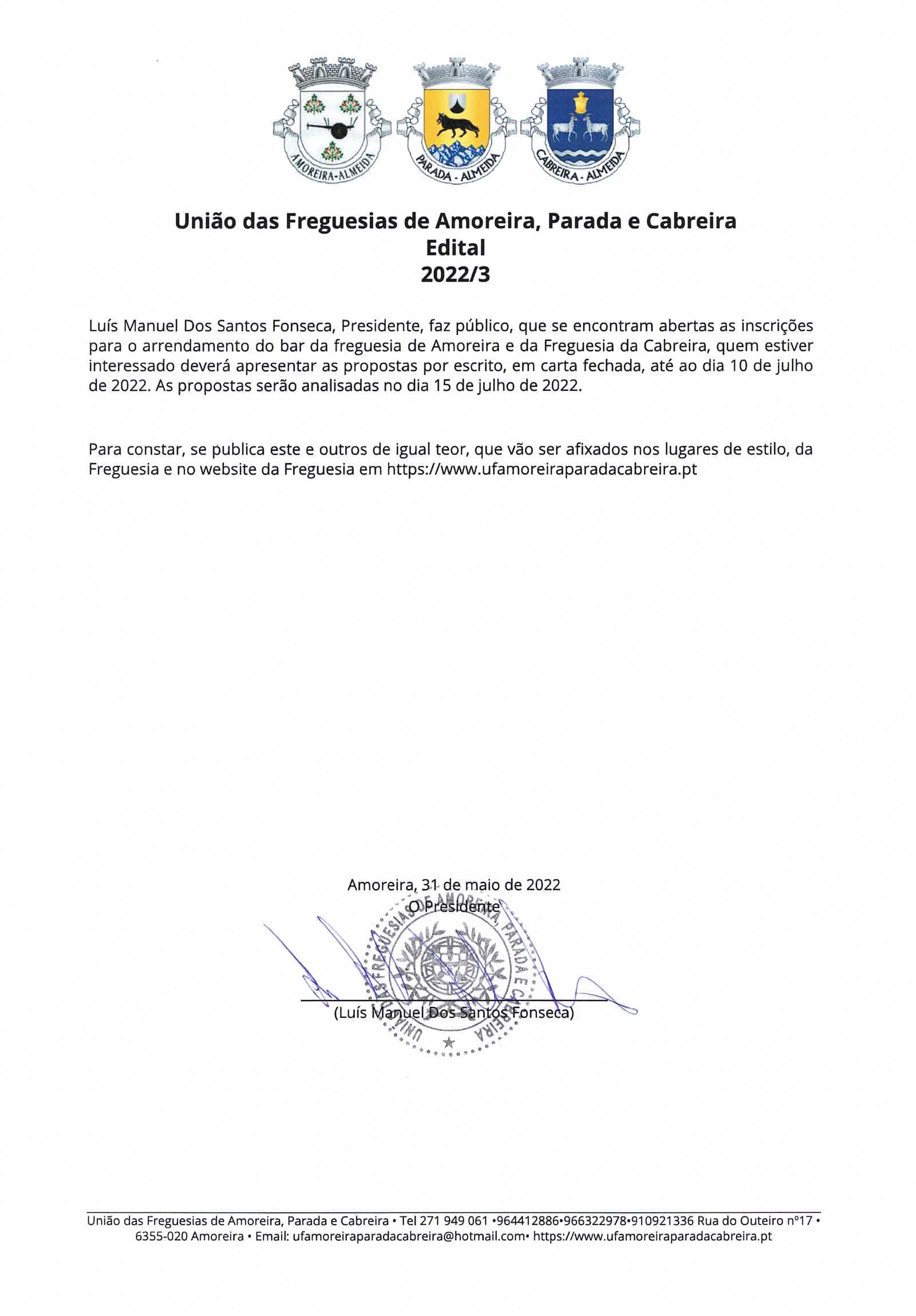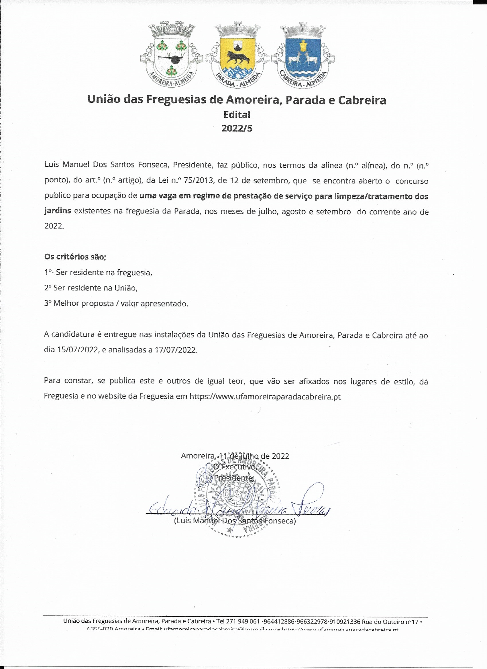 © 2026 União de Freguesias de Amoreira, Parada e Cabreira. Todos os direitos reservados | Termos e Condições | * Chamada para a móvel fixa nacional